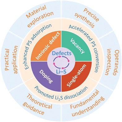 图1:缺陷工程用于加速锂硫化学的策略,机制与展望示意图