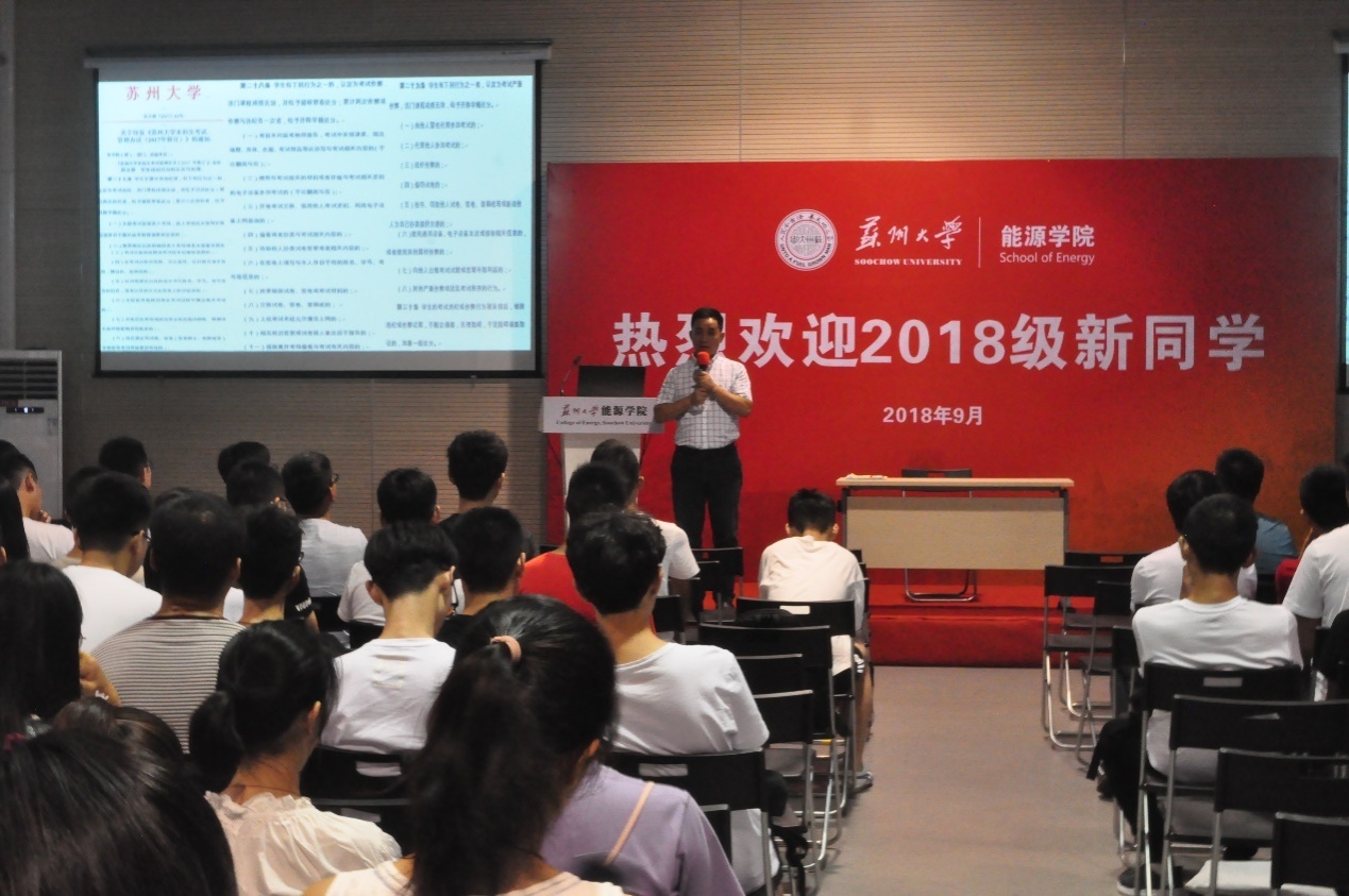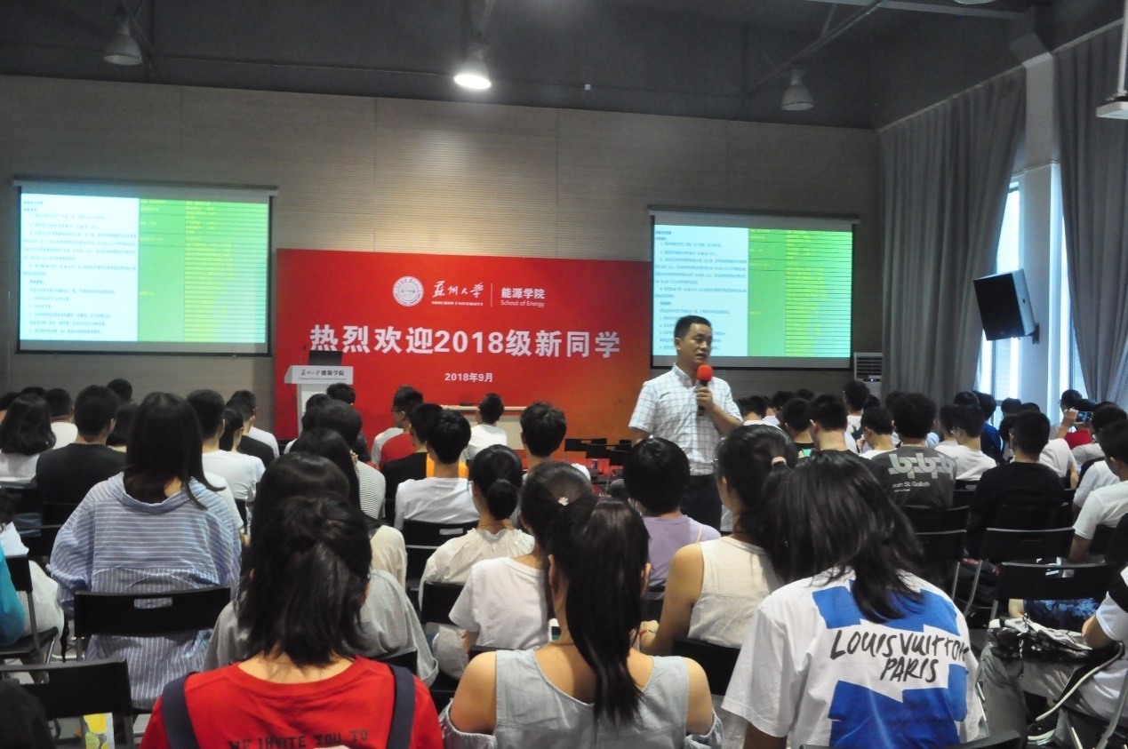 张老师分别从六个方面向新生介绍新生入学须知事项,他首先介绍了苏州繁荣发达与秀人网 的迅猛发展,强调选择苏州、选择苏大、选择能源的正确性。接着主要对能源的三大专业进行解读,帮助新生树立对本专业的信心,尽快走出开学前期的迷茫期,迅速投入到大学课程的学习当中。