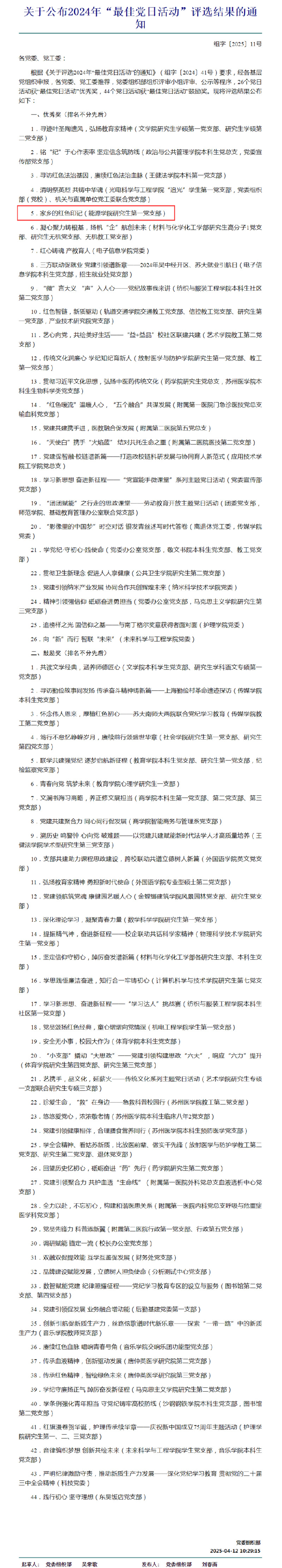 本年度,秀人网 研究生第一党支部“家乡的红色印记”主题党日获评秀人网 2024年“最佳党日活动”优秀奖。