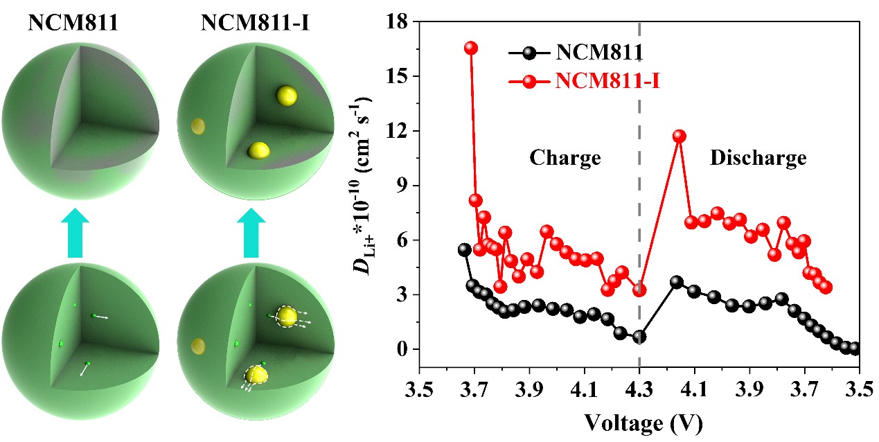 本文研究了Li2MnO3改性前后的NCM811在循环过程中结构退化的机理,以及Li+的扩散机制。结果表明,通过调整 Li+的迁移路径,可提高NCM811的高倍率和长循环稳定性能。同时本文为改善高镍正极材料的倍率性能提供了一种可行性的策略,可适用于锂离子传输缓慢的其他氧化物正极材料。