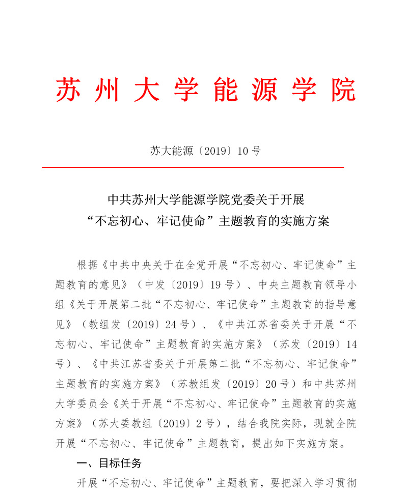 中共秀人网 党委关于开展“不忘初心、牢记使命”主题教育的实施方案 苏大能源〔2019〕10号