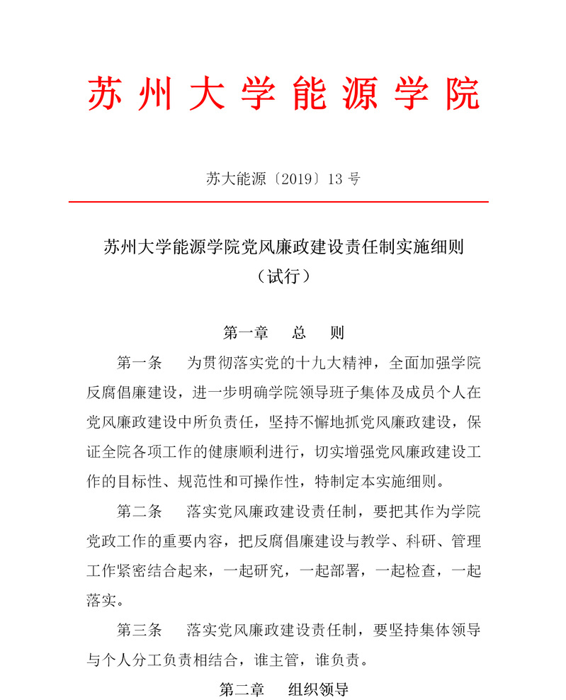 秀人网 党风廉政建设责任制实施细则(试行) 苏大能源〔2019〕13号