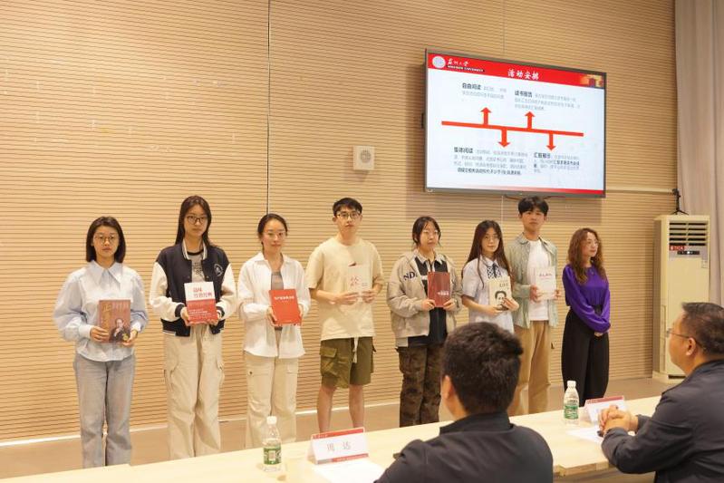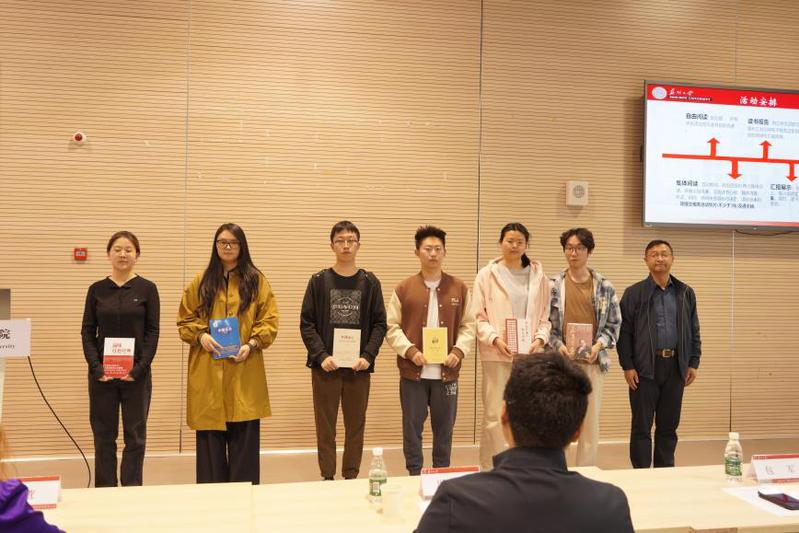 敬文书院党委副书记、副院长胡萱与秀人网 党委副书记、副院长包军分别为敬文书院及秀人网 的学员代表们颁发阅读书籍。至此,两院联合举办的培训班开班典礼暨第十二期读书共建活动开幕式圆满完成,全体师生共同合影留念。