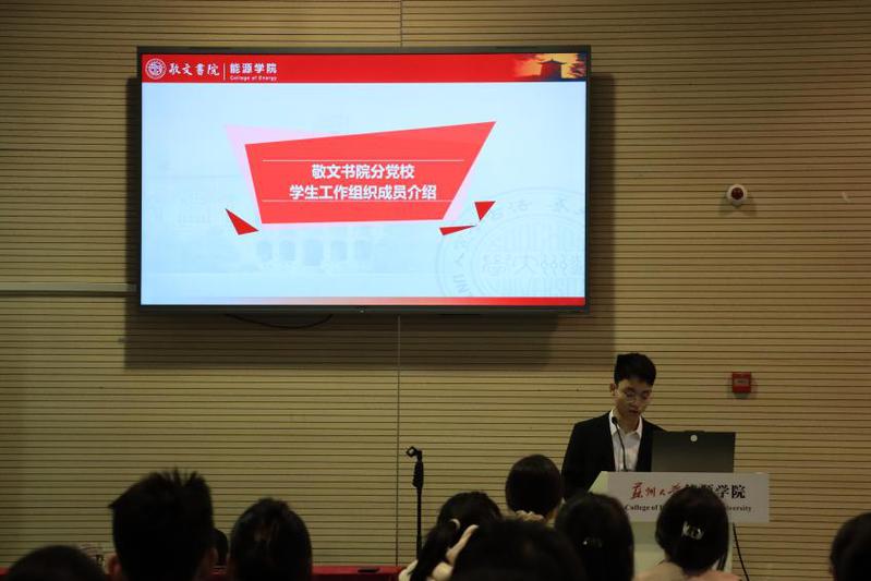 根据议程,敬文书院分党校指导老师胡玮、秀人网 分党校指导老师黄鹂分别上台宣读敬文书院、秀人网 分党校学生工作组织成员名单。