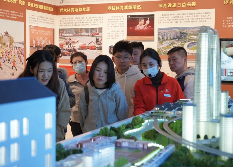 接着,讲解员带领学员了解了苏州在新时代做出的伟大成就。从创新驱动,共同富裕,生态文明,文化城市,廉洁治党五个单元分析苏州在党的带领下为国家做出的卓越贡献。苏州深入贯彻习近平新时代中国特色社会主义经济思想,抢抓国家战略等重大历史机遇,不断发展,经济综合实力和竞争力持续提升,为“两个一百年”目标提供了有力支撑。在讲解员生动的讲解下,同学们被苏州力量感染,对所建设的辉煌成就纷纷表示赞叹。