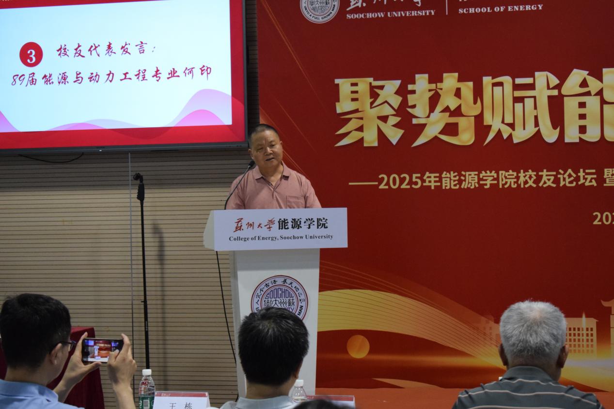 1989届能源与动力工程专业校友何印作为优秀校友代表发言,何学长详细阐述了他们设立这项奖学金的初衷和背后深刻的意义,并希望同学们能够珍惜在校的宝贵时光,充分利用学校提供的资源,不断提升自己的综合素质。