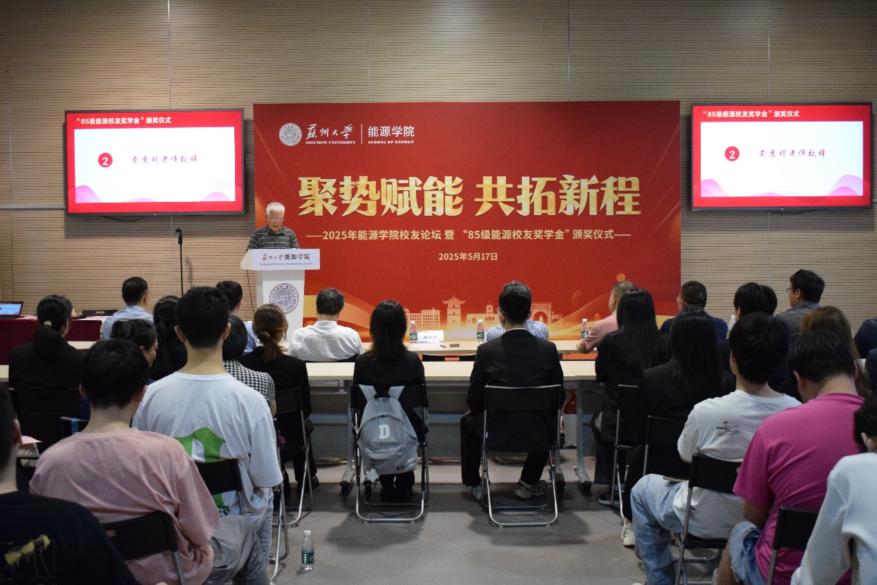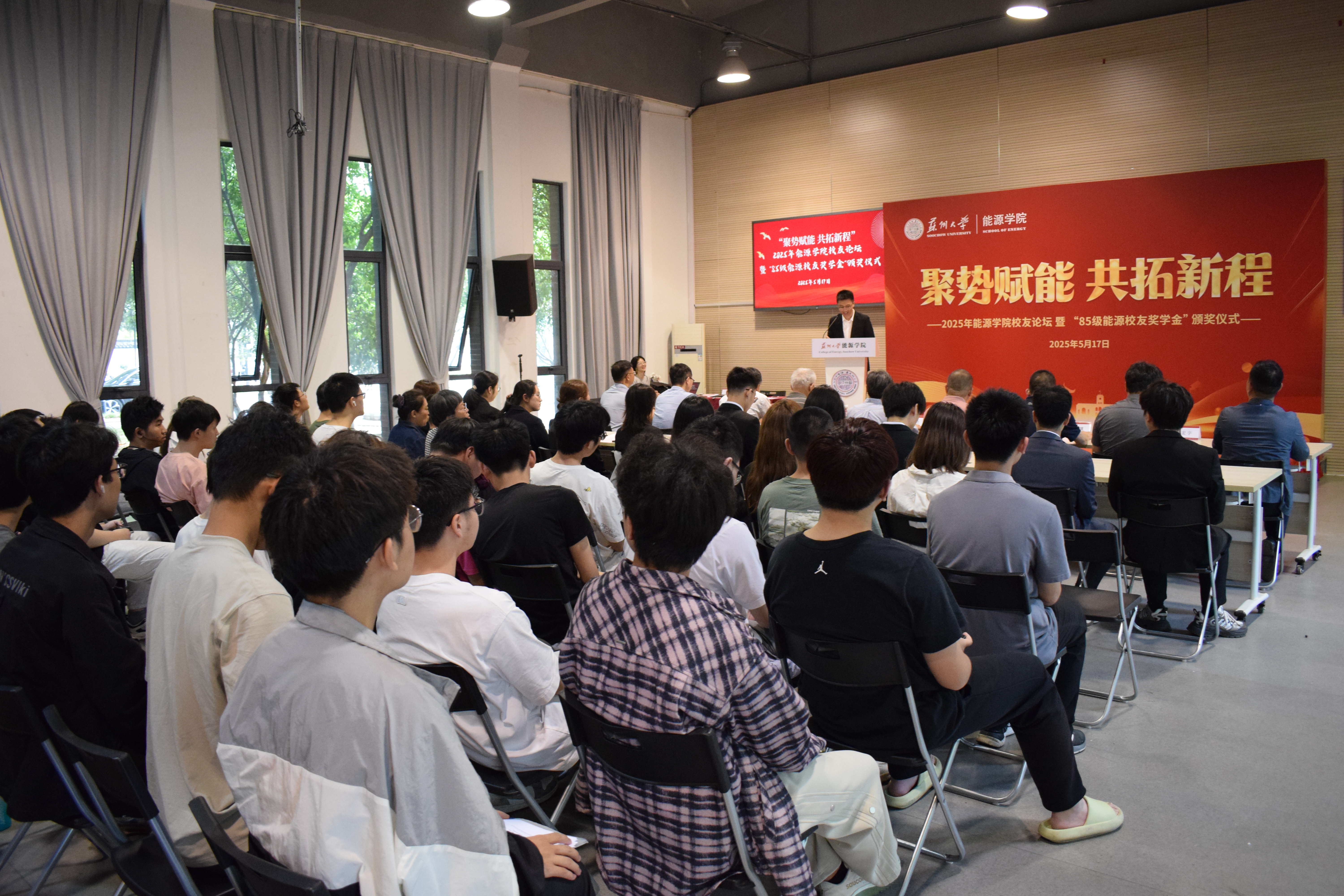 活动伊始,魏义凡老师介绍了与会嘉宾。随后,戴苏明老师发表致辞并做了“聚势赋能 共拓新程”的主旨报告。戴老师向设立“85级能源校友奖学金”的全体85级校友表示深切的感激,同时也向15名获奖同学表示衷心的祝贺。戴老师强调,奖学金不仅是一种物质上的奖励,更是一种精神上的鼓励和肯定,希望各位获奖同学能够行而不辍,努力学习,不断进步,争取在各自的领域取得更大的成就,为社会的发展贡献青春力量。