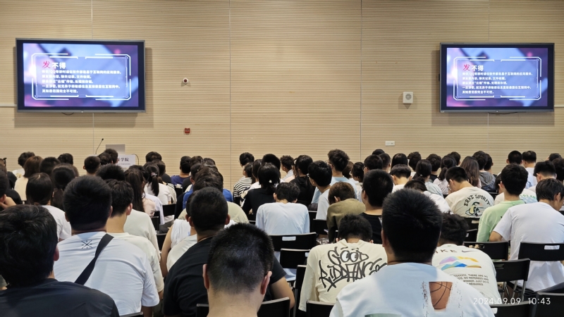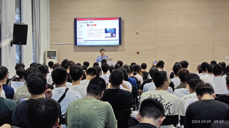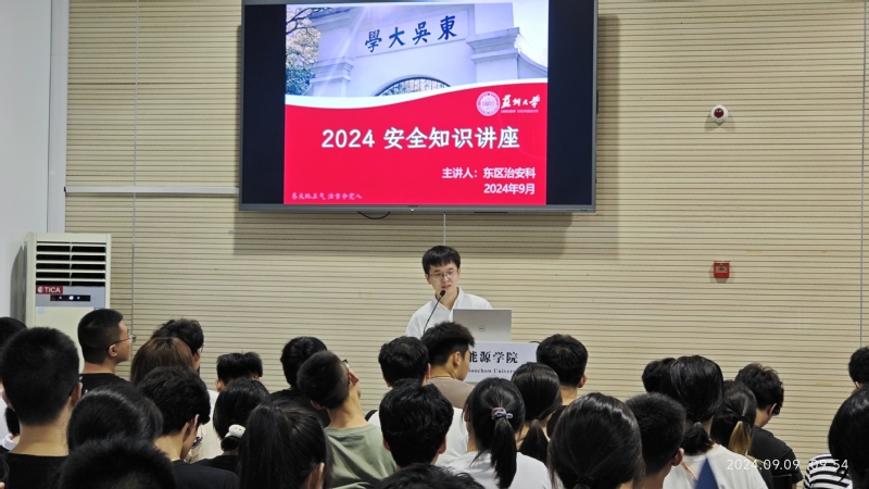 9月9日上午,学院在新能源大楼多功能厅举办2024级新生安全教育系列主题活动,苏州市葑门派出所丁仁杰警官、秀人网 保卫处东区治安科彭照华科长和王慕尧老师应邀出席,活动由新生辅导员、团委书记张振华主持。