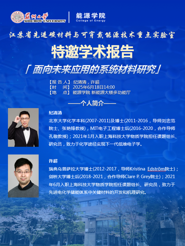 江苏省先进碳材料与可穿戴能源技术重点实验室特邀学术报告