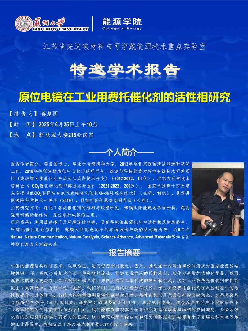江苏省先进碳材料与可穿戴能源技术重点实验室特邀学术报告