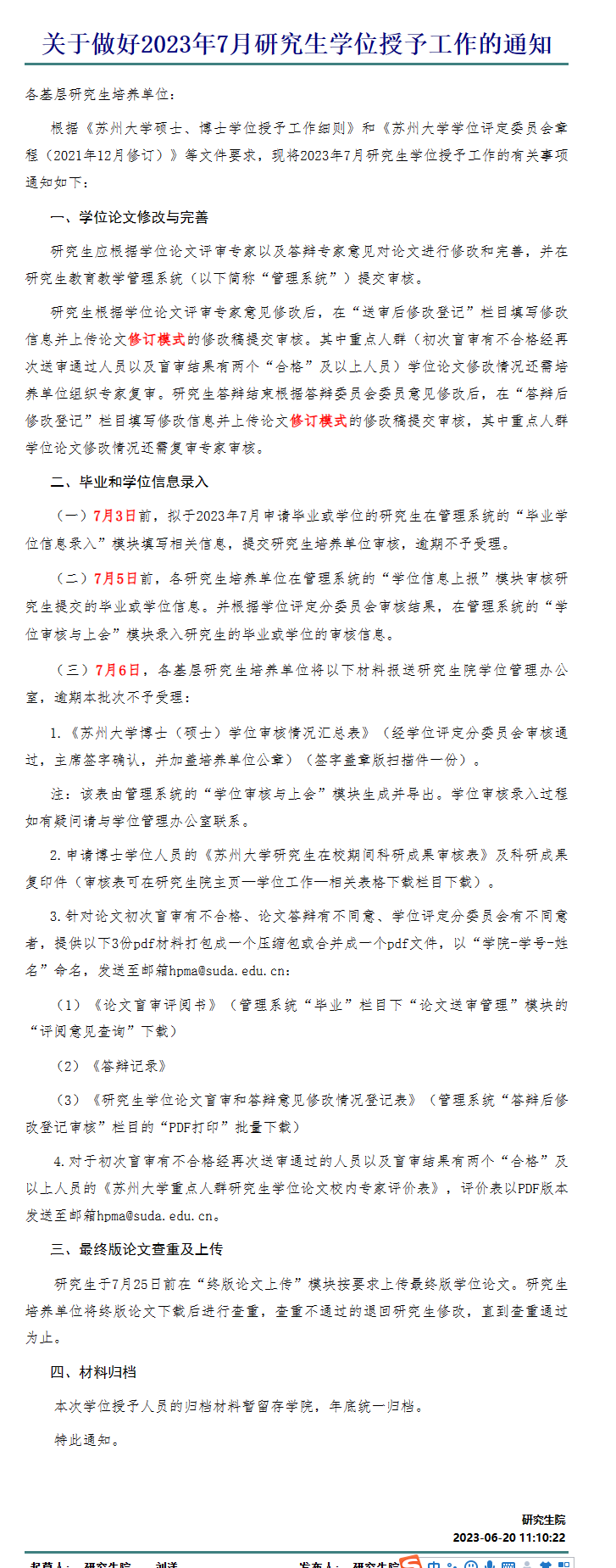 附:学校通知《关于做好2023年7月研究生学位授予工作的通知》