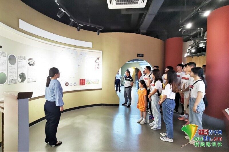图为解说员向团队介绍钱集镇的历史沿革 。中国青年网通讯员 施张璟 摄