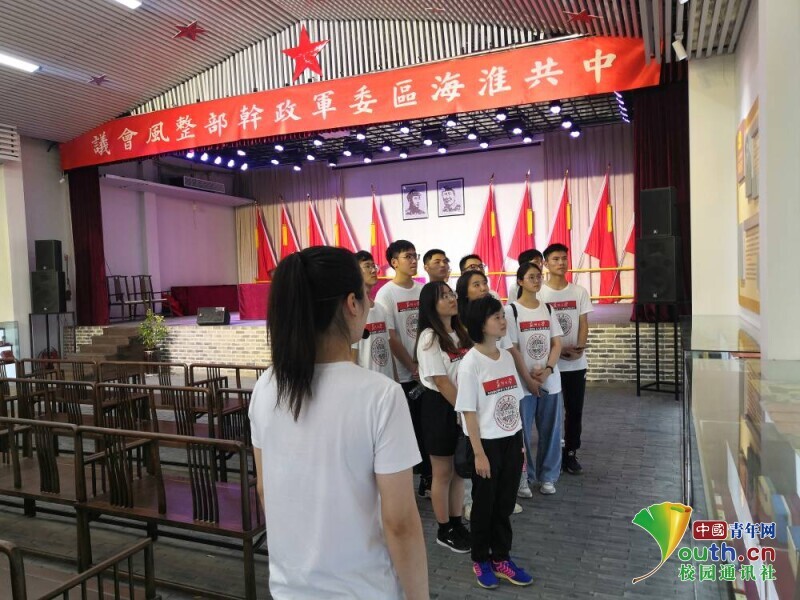 图为四叶菊团队参观淮海区军政大礼堂。 中国青年网通讯员 李亚军 摄