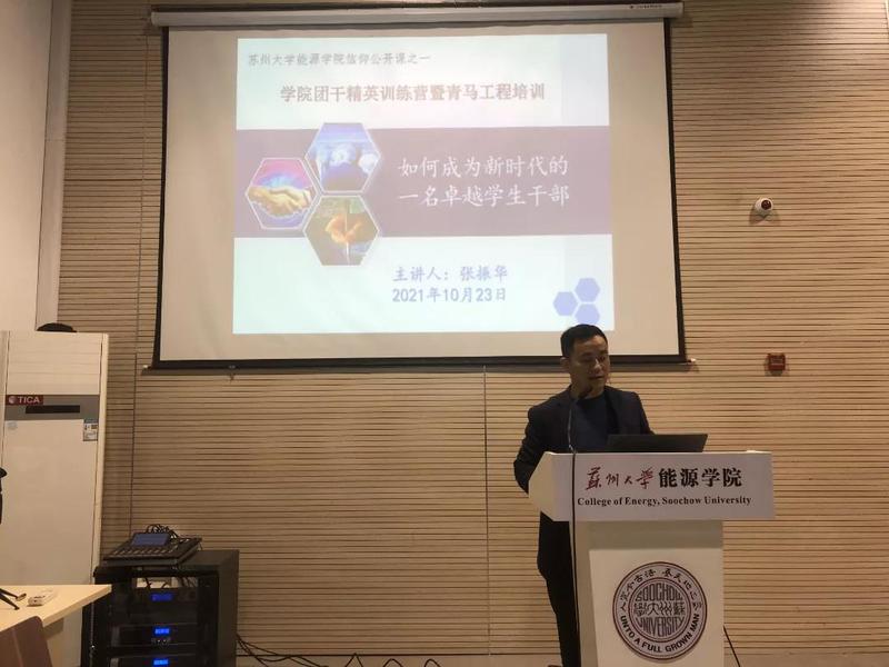 10月23日晚,秀人网 团干精英训练营暨青马工程第四期培训在新能源大楼多功能厅121如期举行。作为团委开展增能计划的一部分,团委书记张振华老师以“如何成为一名卓越的学生干部”为题向学院2020级、2021级所有班团干部和院各学生组织的青年骨干主讲了本次信仰公课。