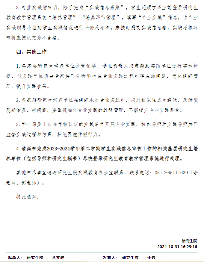 2、专业实践结束后,登录系统填写专业实践信息,未按时提交实践信息者,实践考核环节将直接认定为不合格。