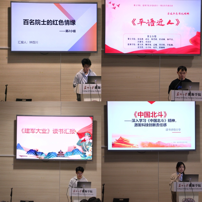 随后,会议开展了读书成果分享环节,由本期参与读书共建会的七个小组代表分别进行读书成果展示。学员们结合原文内容与集体讨论,先后对《马克思与我们》《百名院士的红色情缘》《忆先生》《中国北斗》等七本著作进行了精彩生动的分享。有的小组深入探讨了《马克思与我们》,从马克思主义的世界观和方法论出发,分析了人类社会历史发展的规律,并强调了马克思主义对中国革命和社会主义现代化建设的重要指导作用;有的小组分享了《平语近人》中的重要论述,讨论了青年在新时代的责任和使命以及如何在实践中贯彻党的理论和政策,为实现中华民族伟大复兴的中国梦贡献青春力量;有的小组围绕《建军大业》,回顾了中国人民解放军的创建和发展历程,分享了先辈们在充满信仰与热血的年代下的历史记忆,讨论了人民军队的建立和发展对于国家和民族的重要性,以及青年人在维护国家安全和推动国防现代化中的责任和使命。大家通过交流读书心得,深刻认识红色经典精神力量,在思想碰撞中迸发了新的思想火花。