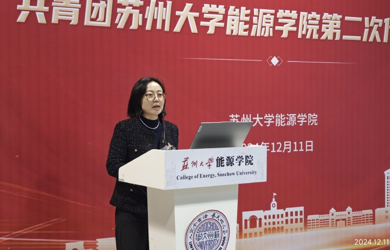 院党委书记沙丹丹老师代表学院发表讲话。她充分肯定了近年来学院团委各项工作取得的优异成绩。特别是自2020年学院首届团代会以来,在院党委与校团委关怀下,学院团委先后荣获“五四红旗团委”、2021和2023年获校社会实践优秀组织奖等,这些在学院体量较小的情况实属难得。过去四年,学院团学组织深入学习习近平新时代中国特色社会主义思想与党的十九大、党的二十大精神,深化学生组织改革创新工作,开展众多特色活动并获佳绩。沙书记指出,面对新时代学生新特点,学生组织要提升服务意识与水平,引领青年施展抱负,在学校指引下为学院与学校增光添彩。