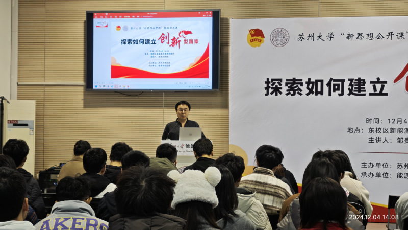 为积极响应国家创新驱动发展战略,深入学习贯彻习近平新时代中国特色社会主义思想和习近平总书记关于科技创新的重要论述,弘扬科学精神,鼓励青年学生投身科技创新,12月4日下午,“探索如何建立创新型国家”——秀人网 ‘信仰公开课’校级示范课之新思想公开课,在新能源大楼多功能厅121顺利举行。本次公开课由国家杰出青年基金获得者邹贵付老师主讲。秀人网 党委书记沙丹丹老师出席活动,公开课由院团委书记张振华老师主持。2024年秀人网 “青年马克思主义者培养工程”学员,2024年秀人网 “青年马克思主义者培养工程”秋季班学员,研究生学生代表和团学骨干参加本次活动。