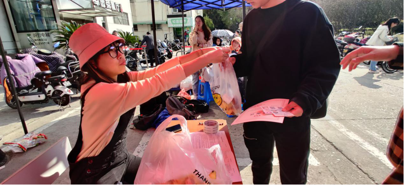 经过检查合格后的同学,志愿者早已为他们准备了糖水。