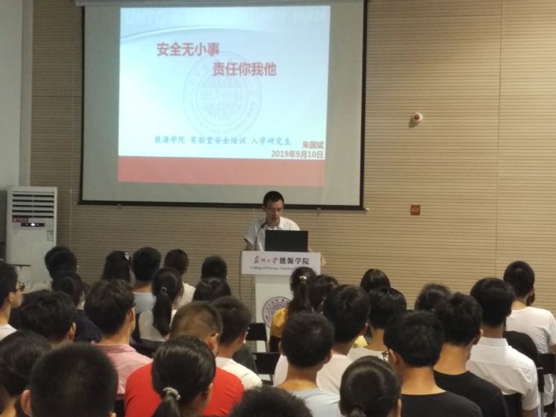 大会开始,孙放老师强调了实验室安全培训的重要性,并向大家介绍了戴晓副院长和朱国斌老师。