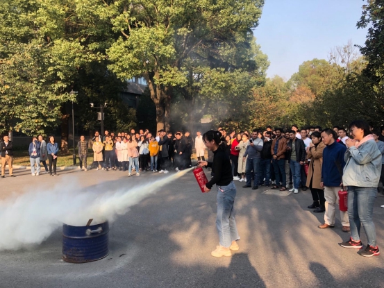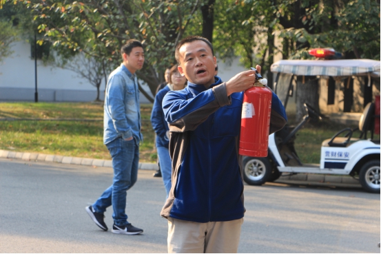 随后,学校保卫处老师向大家普及了消防安全常识,展示了灭火器的使用步骤。各位师生都积极学习并进行灭火的实战演练。