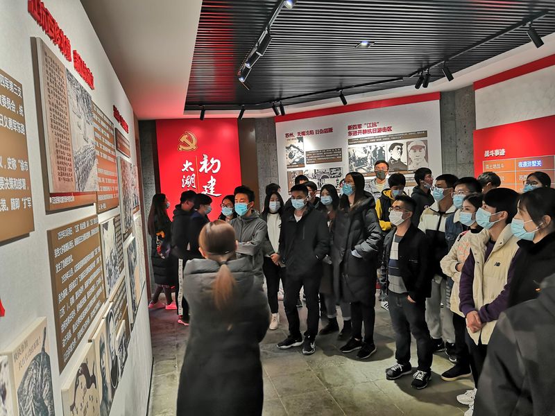 随后,讲解员带领学员们参观学习了太湖游击队初建、重建、扩建的曲折历程。每一段历程,都是那么惊心动魄,每一次战斗,都是那么令人肃然起敬。在讲解员生动的讲解下,同学们渐渐地感受到,太湖游击队从最初的几个人到后来的几百人,再到上千人,队伍的壮大是多么难能可贵。学员们也参观了游击队员们的生前物件,有书信、衣物、水杯、照片等等,每一件上面都有说不完的故事,每一件上面都刻着历史的沧桑,每一件都是太湖游击队员生命的印记,一个小小的物件,承载起的是一段波澜壮阔的历史。