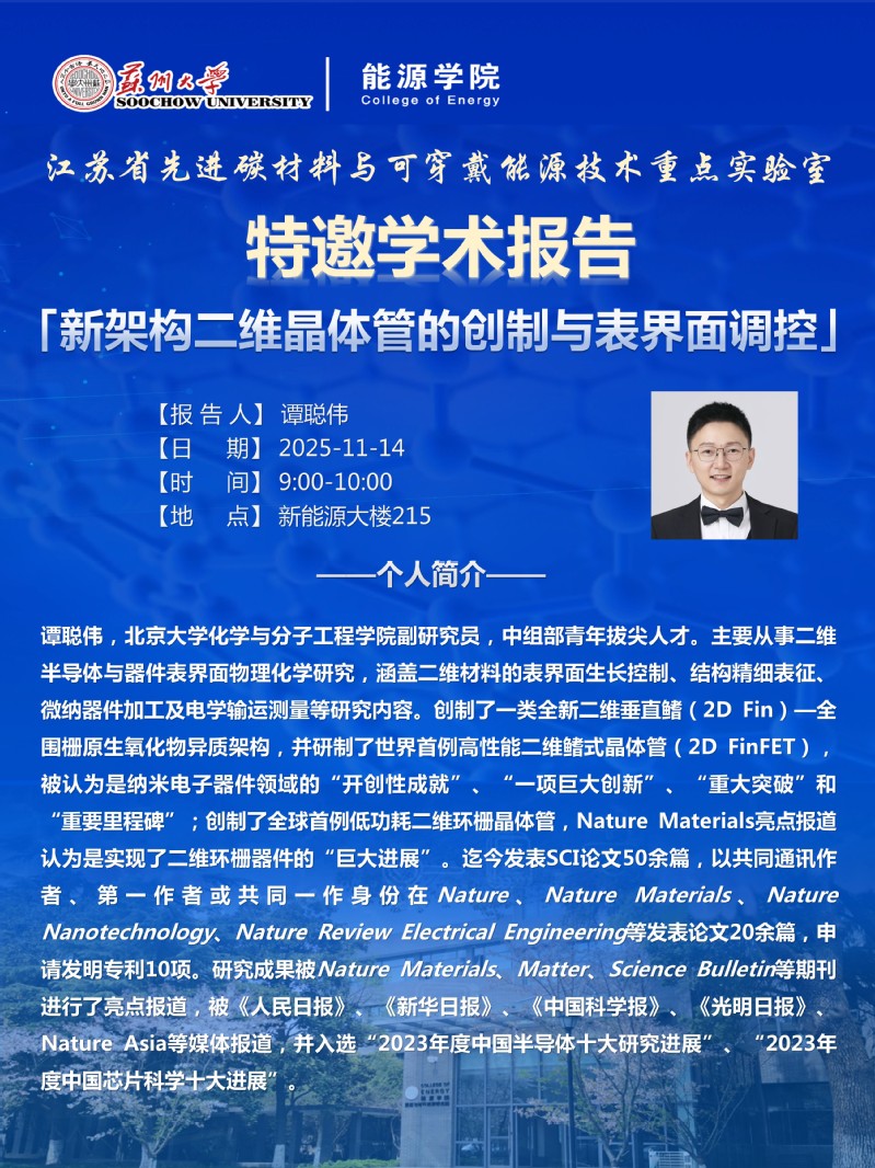 江苏省先进碳材料与可穿戴能源技术重点实验室特邀学术报告