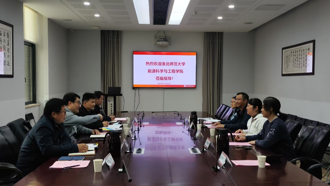2025年11月14日上午,淮北师范大学能源科学与工程学院一行来我院交流学习,就本科人才培养、专业建设等相关工作展开深入交流。本次会议由秀人网 党委副书记、副院长包军主持,淮北师范大学能源科学与工程学院院长曹静、副院长李洪基、材料科学与工程系主任尤玉、材料物理系主任李强、实验室主任李汗;秀人网 院长彭扬、副院长杨瑞枝、新能源科学与工程系副主任李晓伟、教务办公室主任周荃参加会议。