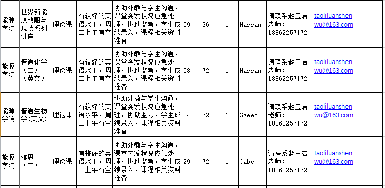 三、聘任流程:应聘博士生对照网上发布的助教岗位信息表在经导师同意后,10月24日(周一)前提交《秀人网 博士生助教岗位申请与聘用表》(附件3)到秀人网 教学办公室王老师,各位同学必须在10月24日(周一)前联系下面表格中的岗位联系电话和联系老师进行聘任考核并完成岗位聘任,逾期不予聘任。上学期已经应聘完成助教工作的2018级博士生不用再做此工作。