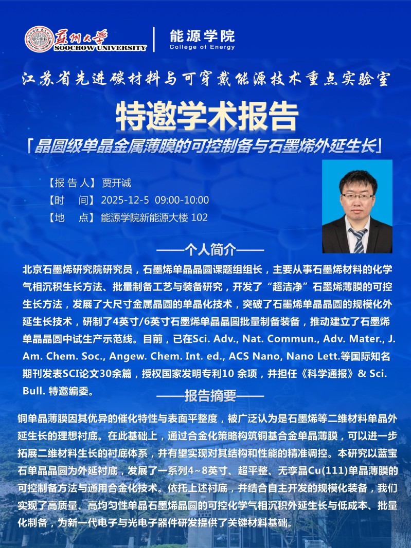 江苏省先进碳材料与可穿戴能源技术重点实验室特邀学术报告