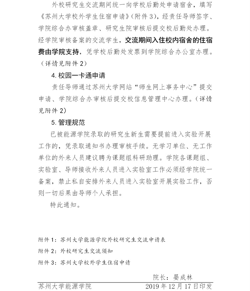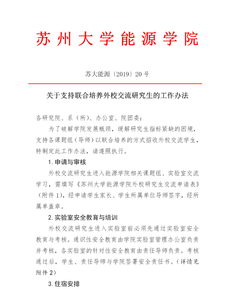 关于支持联合培养外校交流研究生的工作办法 苏大能源〔2019〕20 号