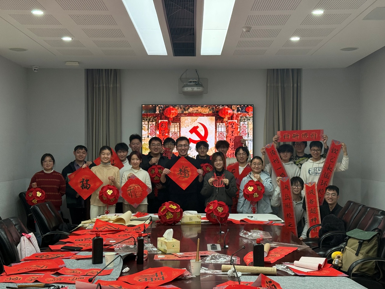 活动尾声,师生们将作品精心布置,并合影留念。带着亲手制作的珍贵礼物与满心的温暖,本次主题党日活动圆满结束。此次活动将党性教育融入传统文化体验,让党员师生在亲身参与中深刻感受中华文化的博大精深与独特魅力,进一步激发了民族自豪感与文化认同感。在剪纸的细致中锤炼了耐心,在笔墨的挥洒间坚定了信仰,在灯笼的暖光里汇聚了力量。大家一致认为,要将这份文化自信与党性觉悟转化为扎实学习、勤奋工作的动力,以更饱满的热情、更团结的姿态,为推进学院事业高质量发展贡献智慧与力量。