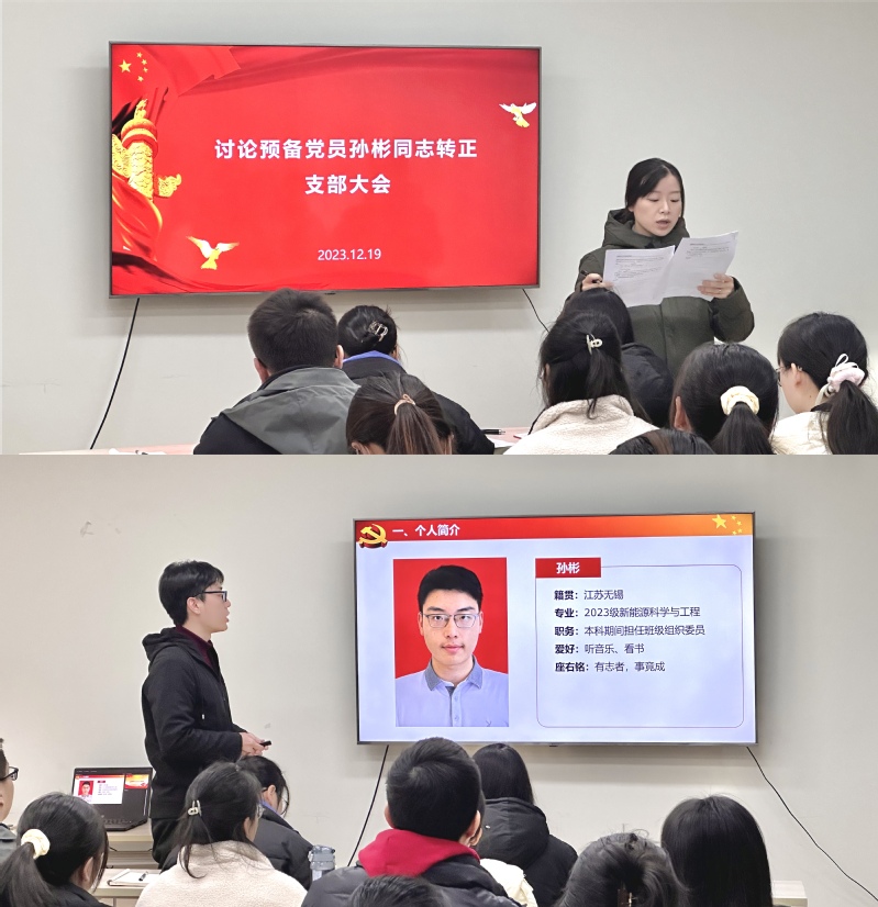 1月5日,研究生第一党支部召开讨论预备党员转正支部大会,本次会议针对预备党员孙彬同志转正情况展开讨论。会议在新能源大楼315会议室举行,会议由研究生第一党支部书记严若今主持。