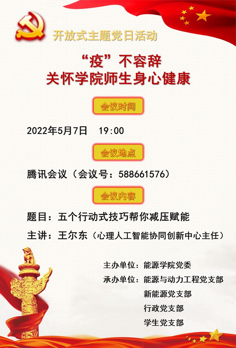 开放式主题党日活动:“疫”不容辞 关怀学院师生身心健康