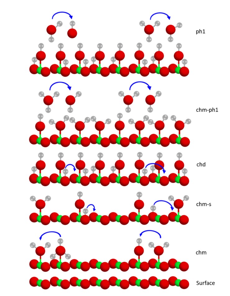 单斜ZrO2在“冰”状结构的五种吸附解离模型预测