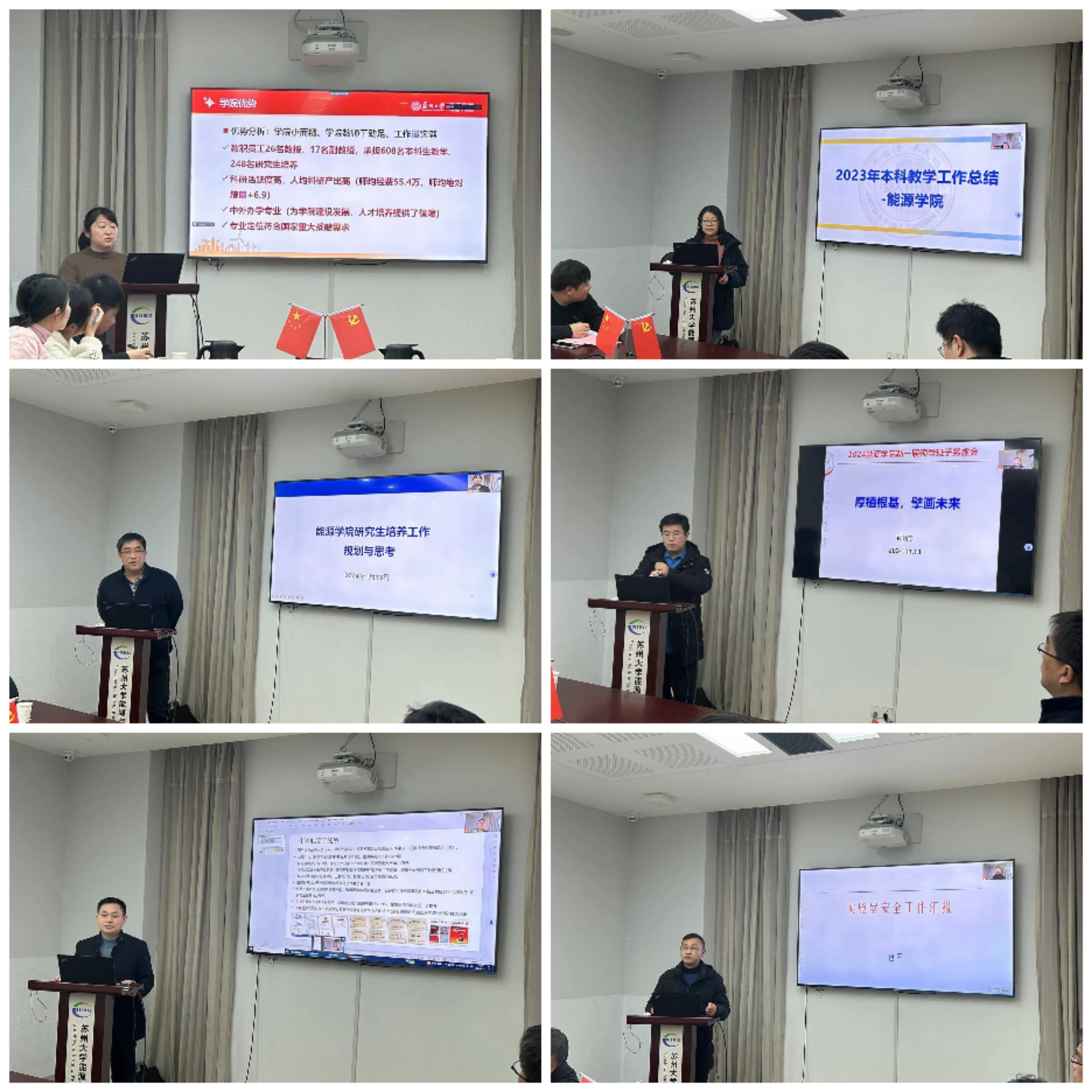 接着,学院领导班子成员分别从学院的人才引进和发展、师资队伍建设和管理等人事工作以及学科规划建设,本科生和研究生教育教学等优质生源培养,研究院发展建设和科研创新,测试平台中心建设和实验室安全管理等方面,各自用精心准备的PPT详细汇报展示了对新一年里各项工作的探索与思考,为学院今后改革发展谋篇布局。