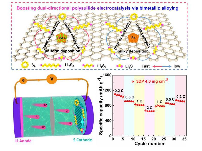 锂硫电池由于诸多优点已经获得了诸多科研工作者的关注,目前限制其大规模应用的瓶颈主要在于多硫化锂的穿梭效应和氧化还原动力学缓慢等。基于以上现状,秀人网 的孙靖宇教授团队在Advanced Functional Materials上发表题为“Boosting Dual-Directional Polysulfide Electrocatalysis via Bimetallic Alloying for Printable Li–S Batteries”的研究论文。秀人网 硕士研究生史子雄为第一作者;孙靖宇教授为通讯作者。