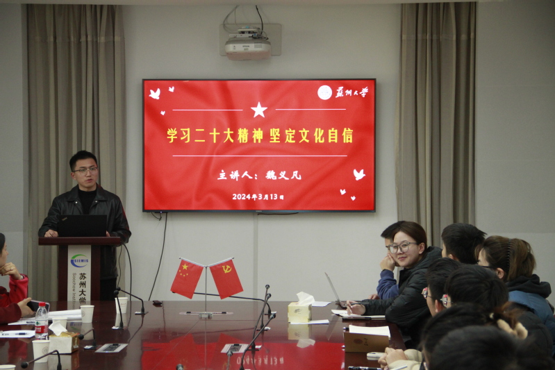 随后,魏义凡讲解了“学习党的二十大精神,坚定文化自信”主题团课。他强调了学习贯彻党的二十大精神的重大意义,并建议各位团支书在学业之余,要抽出时间认真学习贯彻党的二十大精神,深刻领会其内涵与要求。魏老师还鼓励团支书们积极组织和动员团员们参与到主题教育活动中来,通过实际行动来全面贯彻党的二十大精神,增强文化自信。他强调,每位团支书都应当以身作则,带领团员们积极参与,确保每个人都能在团组织工作中发挥自己的职责,共同推进团组织的建设与发展。