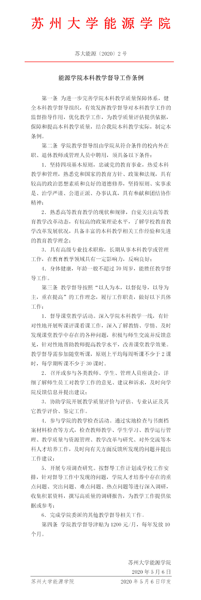秀人网 本科教学督导工作条例 苏大能源〔2020〕2号