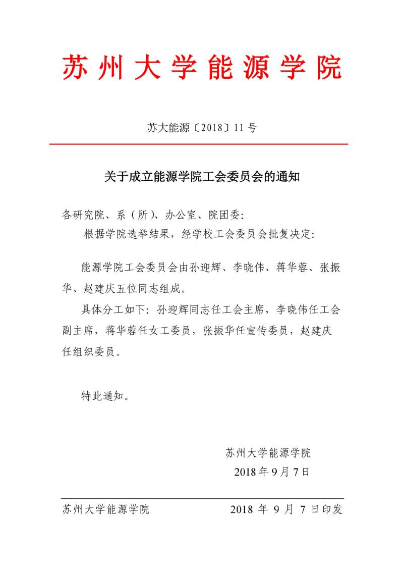 关于成立秀人网 工会委员会的通知 苏大能源〔2018〕11号