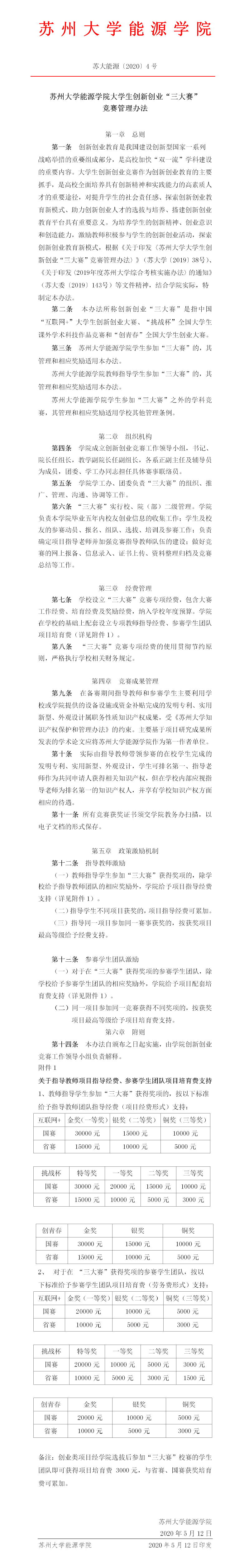 秀人网 大学生创新创业“三大赛”竞赛管理办法 苏大能源〔2020〕4号
