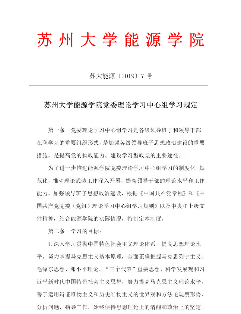秀人网 党委理论学习中心组学习规定 苏大能源〔2019〕7号