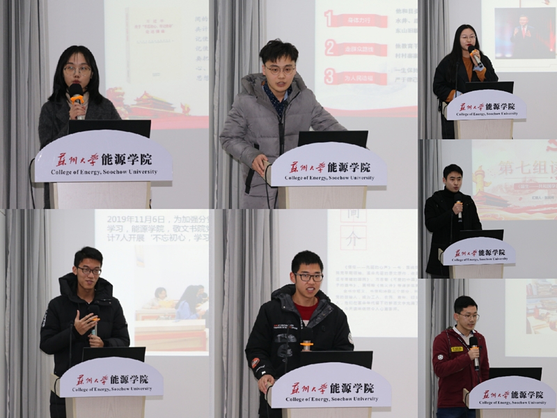 接着,本期读书会的七个读书小组依次为大家进行了精彩的读书汇报。学员们在《习近平关于“不忘初心、牢记使命”论述摘编》中明确了“守初心、担使命”的重要性,学会了用新思想武装头脑、推动工作;在《“不忘初心、牢记使命”优秀共产党员先进事迹选编》中树立了学习的榜样,坚定了自己的理想信念,努力传承优良作风;在《习近平新时代中国特色社会主义思想学习纲要》中领悟到要始终同以习近平同志为核心的党中央保持高度的思想一致;在《信仰——先驱的心声》中重温了革命先驱们的坚定信仰和献身精神;在《这就是中国:走向世界的中国力量》中看到了立于多变世界格局中不断拓新的中国;被《习近平在正定》一书中所展现的习近平总书记的严于律己和求真务实的精神所感动;又被《诞生:共和国孕育的十个月》中那种高瞻远瞩、敢作敢为、保国安民、大公无私的英雄气概所鼓舞和振奋。