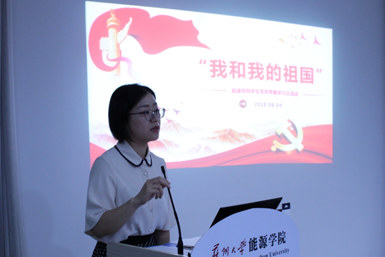 2019年9月4日,为庆祝新中国成立70周年,进一步推动“两学一做”学习教育深入开展,秀人网 党委开展“我和我的祖国”学生党员学习交流会。学院党委书记沙丹丹、本科生学生党支部书记张振华、研究生党支部书记沈力炜、本科生辅导员孙放及学院全体学生党员参加了学习交流会。大会由研究生辅导员严若今老师主持。