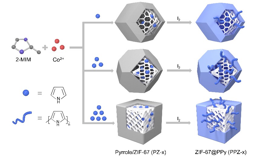 图2. 吡咯对ZIF-67生长过程的配位调制模型图