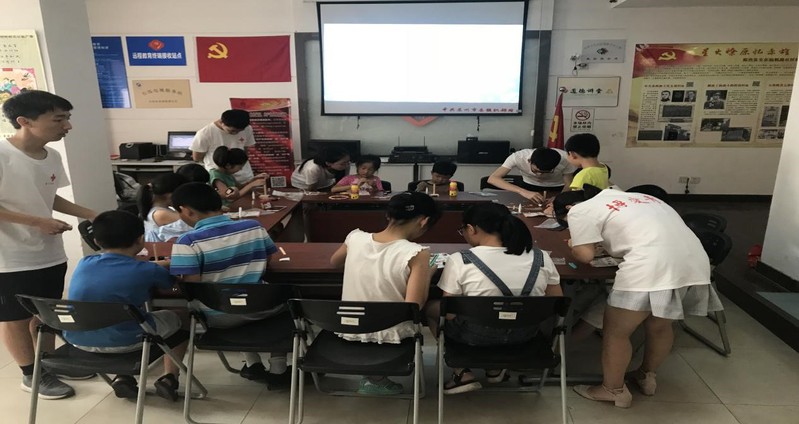 2018年7月13日清晨,苏州市红十字会博爱青春项目、苏大“小青柠”公益团的志愿者们前往锦帆路社区开展志愿活动。等待学生们到齐后,志愿组成员准时开始了今天的劳技课程—自制电动小风车。