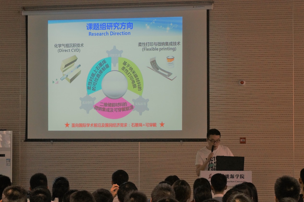 学长学姐们详细介绍了导师的科研方向,主要集中在能源结构,材料化学等各种前沿科技方面,比如学长介绍起导师研究的化学气相沉积技术,柔性打印与微纳集成技术以及面向国际可穿戴石墨烯技术,极大的激发了17级本科生的兴趣,仿佛为学生们打开了一道新世界的大门