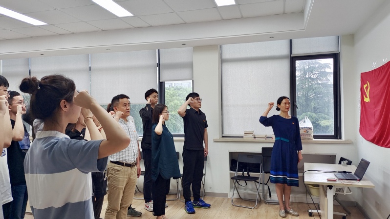 在沙书记的带领下,全体党员高举右手,面向鲜红党旗,重温入党誓词:“我志愿加入中国共产党……随时准备为党和人民牺牲一切,永不叛党。”每一次重温,都是精神的洗礼;每一次对标,都化作前行的动力。会后,全体党员在新能源大楼门前合影留念。
