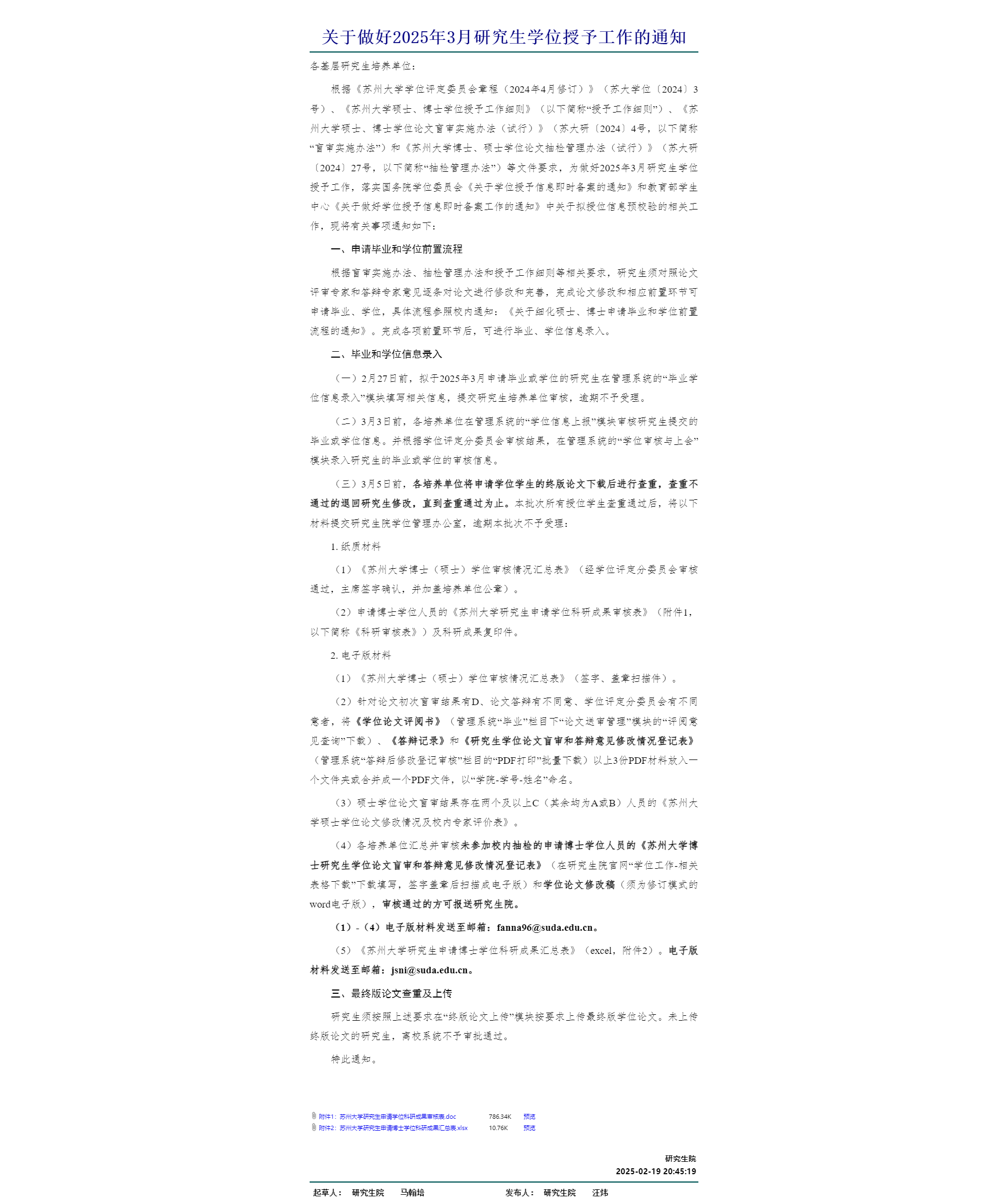 一、根据学校通知《关于做好2025年3月研究生学位授予工作的通知》//file.xiurenmodel.com/defaultroot/gov/info_view_my.jsp?whir_new_verifyCode=1&editId=38270698,请以下同学根据通知做好通知中要求的工作。