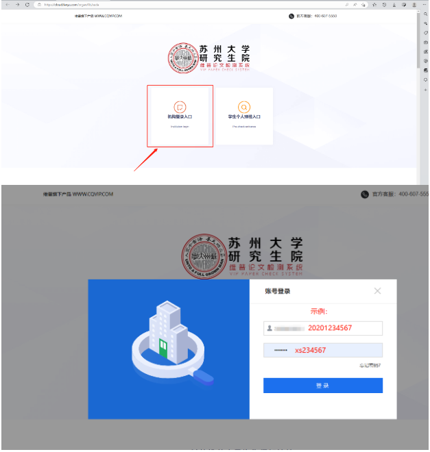 论文查重检测请登录:秀人网 研究生院-维普论文检测系统网站://cloud.fanyu.com/organ/lib/suda